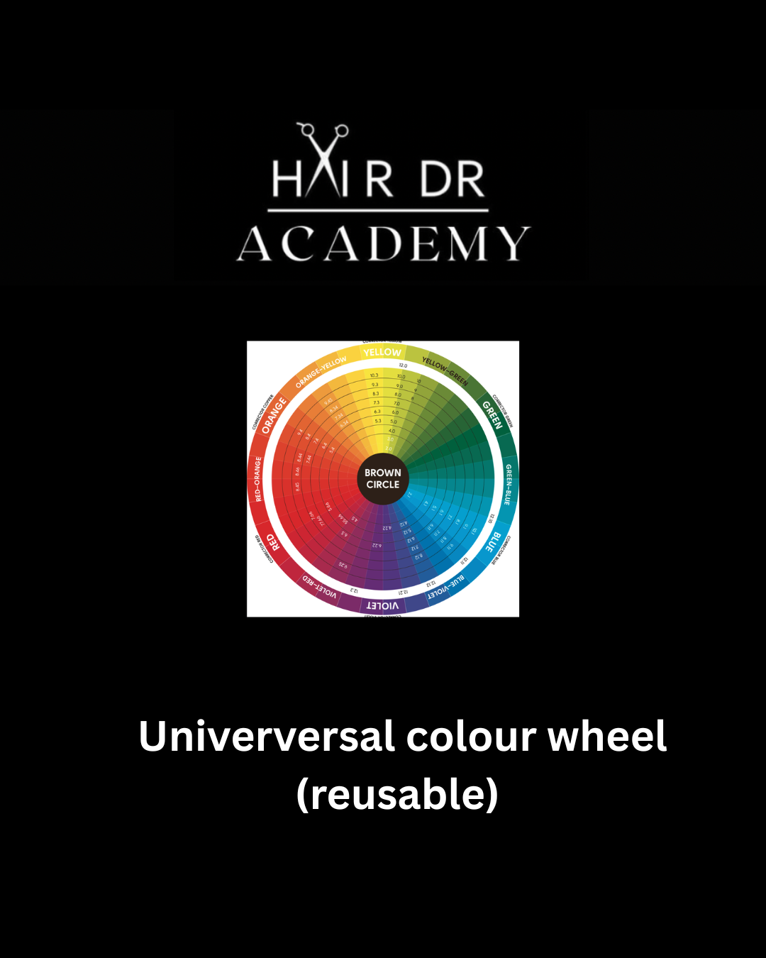 This colour wheel is an essential tool for any hairdresser. It allows you to visually map out your client’s starting level and their desired end result.